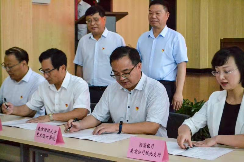 在党建共建签约仪式上,我院党委书记刘浩、南京商业学校校长张利海、南京工业职业技术大学伟德bv1946官网副书记、副院长高原,招商银行城北支行副行长唐姗姗分别与桦墅村党委书记、村委会主任蔡云签订了党建共建协议书;我院李娜副教授代表环境设计系上台认领了“为群众办实事”实践项目。刘浩书记还代表学院将“伟德bv1946官网课程思政实践基地”铜牌授予桦墅村蔡云书记。