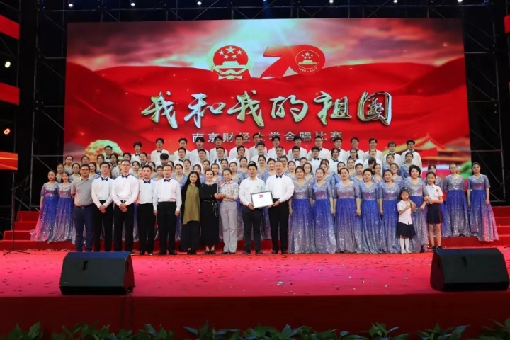 七十年风雨如磐,七十年奋斗不止。比赛现场,一首首歌曲让参与者热血沸腾,让观看者心潮澎湃,响亮的歌声凝聚起爱国的力量。舞台上师生们歌声悦耳,指挥老师激情四射,各学院师生们用一首首脍炙人口的红色歌曲唱出自己热爱祖国、振兴中华的赤子之情。我院选送的参赛曲目《夜空中最亮的星》,用歌声祝福祖国、唱响青春。参演的师生穿着水蓝长裙,点缀闪闪亮片,仿佛万千星光闪动,后半部分的清唱歌声干净纯粹,引人入胜。最终以96.54分的高分获得一等奖和最佳组织奖。