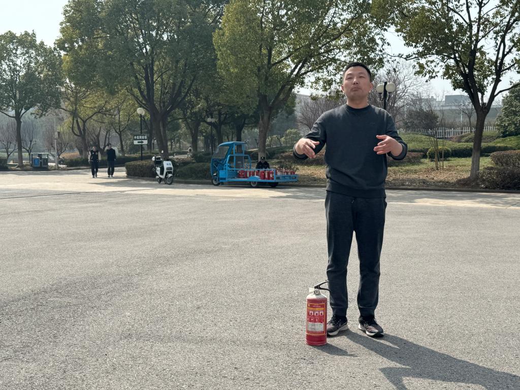 随后,蒋成虎副处长详细地介绍扫了灭火器的种类、区别及使用方法,强调了使用过程中的注意事项并进行演示。在场师生按照“提、握、拔、压”四步法在现场开展了灭火实操。活动现场,工作人员在美术馆会议室门口开启火灾烟雾模拟,在场师生在工作人员的引导下,捂住口鼻,有序开展了疏散撤离工作。