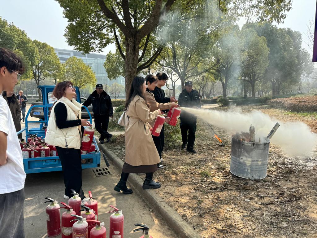 在场师生现场开展灭火实操